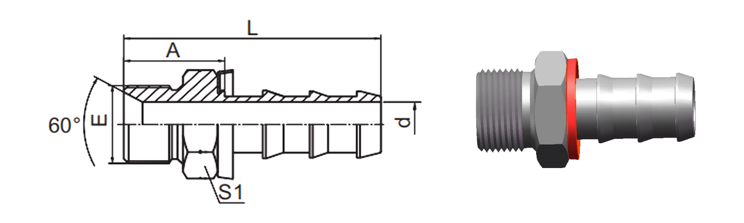 Hogar / Producto / Montaje de manguera estándar / Accesorio estándar británico / 12610A BSP Asiento cónico macho de 60°