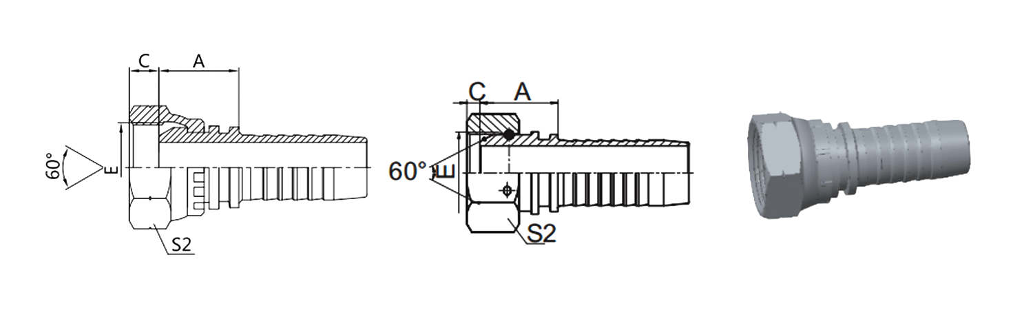 | PARTE NO. | HILO E | ORIFICIO DE MANGUERA DN | ORIFICIO DE MANGUERA ESTRELLARSE | DIMENSIONES A | DIMENSIONES C | DIMENSIONES S2 |
