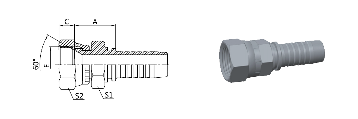 Hogar / Producto / Montaje de manguera estándar / Accesorio JIS / 28611 Asiento cónico hembra métrico JIS de 60°