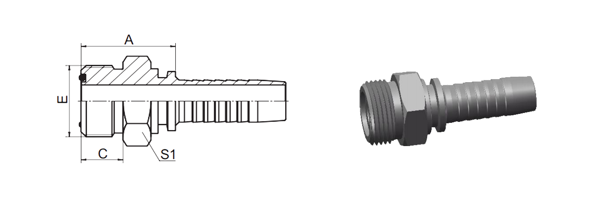 Hogar / Producto / Montaje de manguera estándar / Ajuste métrico estándar / Sello plano macho métrico con junta tórica JB 10311