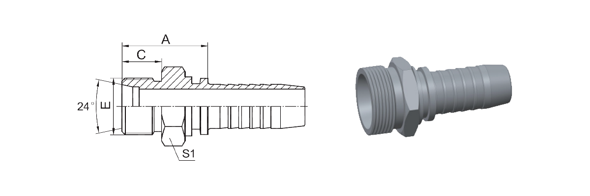Hogar / Producto / Montaje de manguera estándar / Ajuste métrico estándar / 10511 Asiento cónico métrico masculino de 24°Iso 8434-1--Din3861