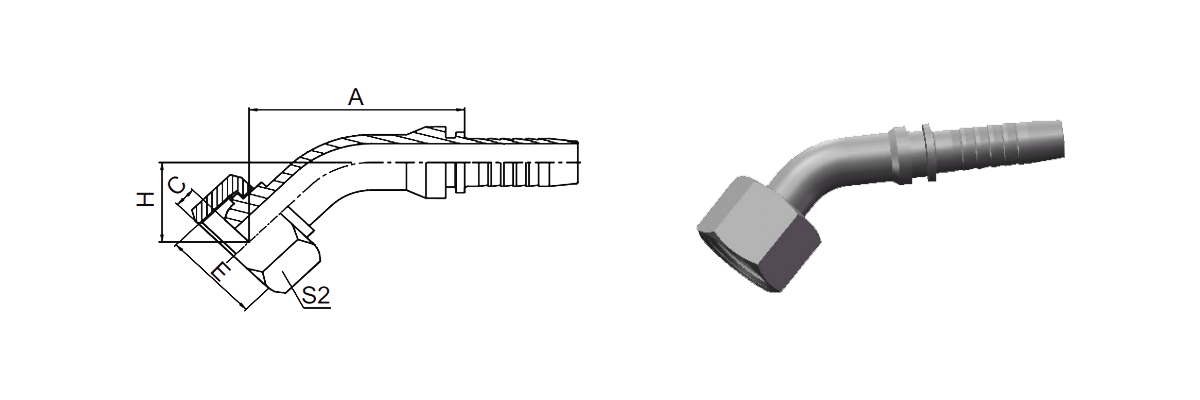 Hogar / Producto / Montaje de manguera estándar / Ajuste métrico estándar / 20141 45° Multisitio femenino métrico