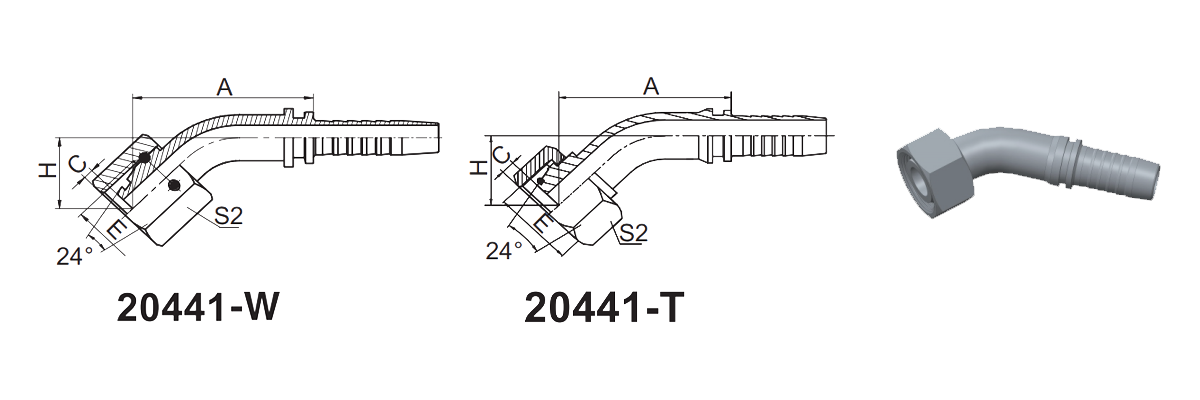 20441 45°Metric Hembra 24°Anillo tórico cónico LTDin3865