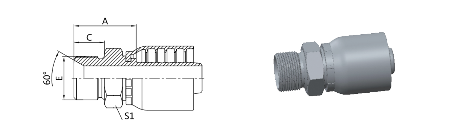Hogar / Producto / Accesorio de manguera de una pieza para OPK Standard / 10511-RW Asiento cónico macho métrico de 24° LT
