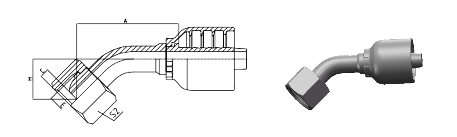 Hogar / Producto / Accesorio de manguera de una pieza para OPK Standard / 20141-RW 45°Metric Mujer Multiseal