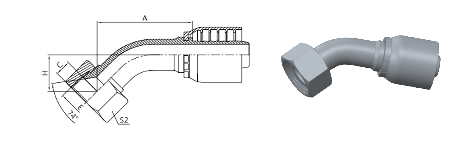 Hogar / Producto / Accesorio de manguera de una pieza para OPK Standard / 20741-RW 45° GB Asiento cónico hembra métrico 74°