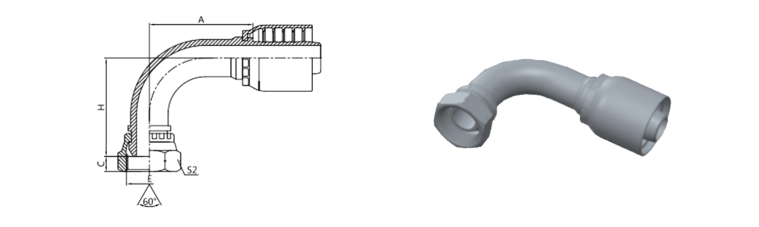 22691-RW 90°BSP Hembra 60° Cono