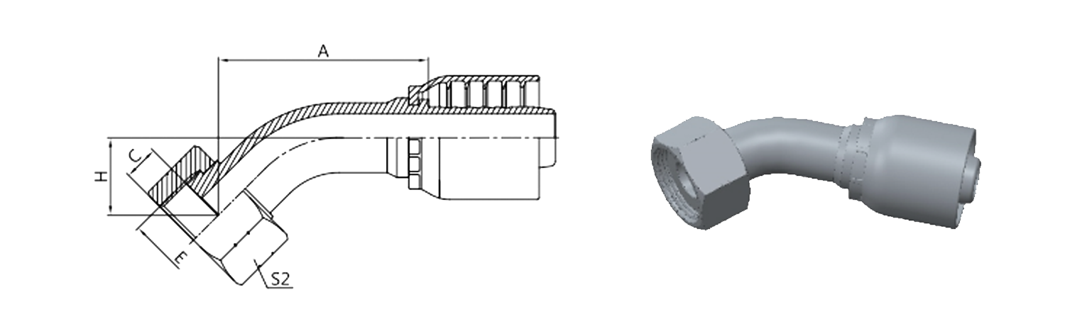 Hogar / Producto / Accesorio de manguera de una pieza para OPK Standard / 24241-RW 45° Asiento plano femenino ORFS