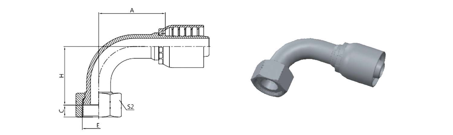 Hogar / Producto / Accesorio de manguera de una pieza para OPK Standard / 24291-RW 90° ORFS Asiento plano femenino
