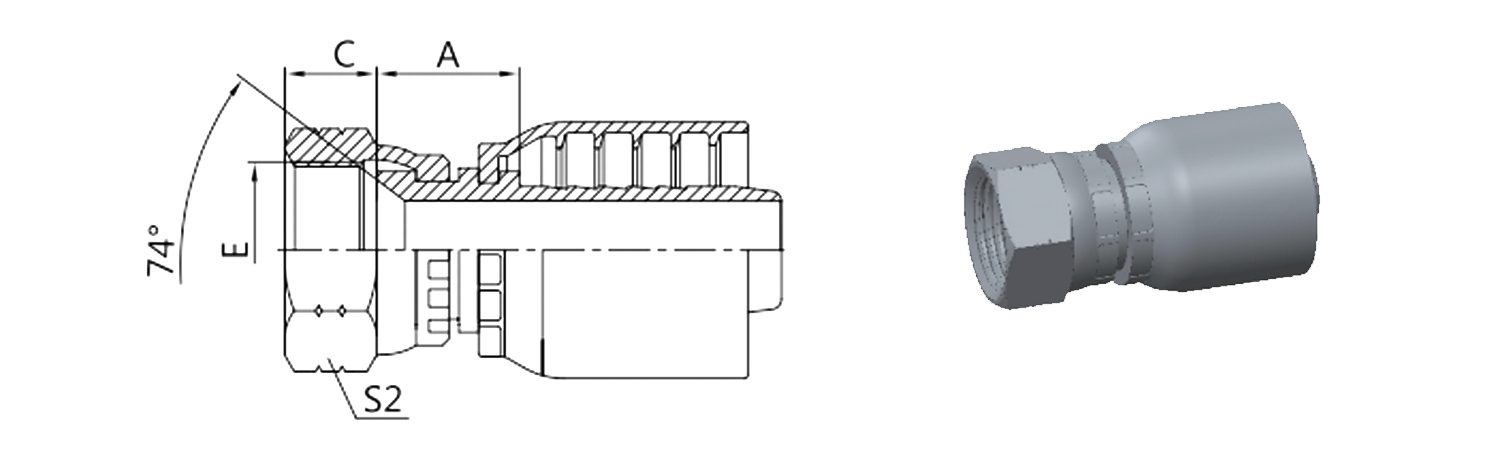 Hogar / Producto / Accesorio de manguera de una pieza para OPK Standard / 26711-RW JIC Asiento cónico femenino de 74°