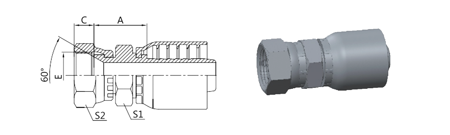 Hogar / Producto / Accesorio de manguera de una pieza para OPK Standard / 28611-RW JIS Asiento cónico hembra métrico de 60°