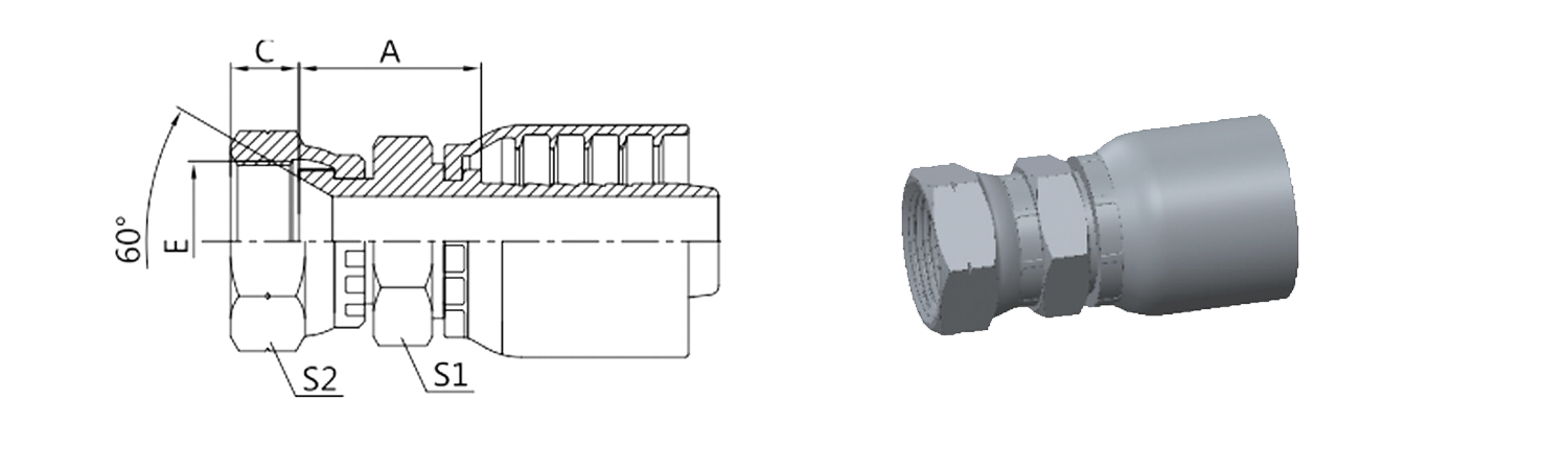 Hogar / Producto / Accesorio de manguera de una pieza para OPK Standard / 29611-RW JIS GAS Asiento cónico hembra de 60° JIS B8363