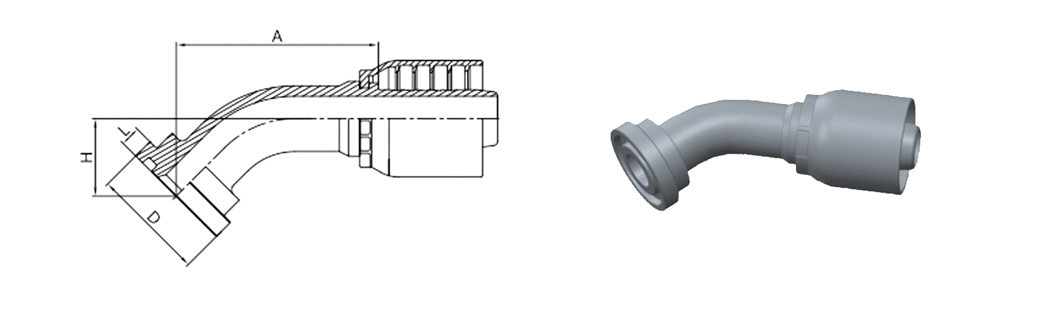 Hogar / Producto / Accesorio de manguera de una pieza para OPK Standard / Brida SAE 87341-RW 45° de 3000 PSI